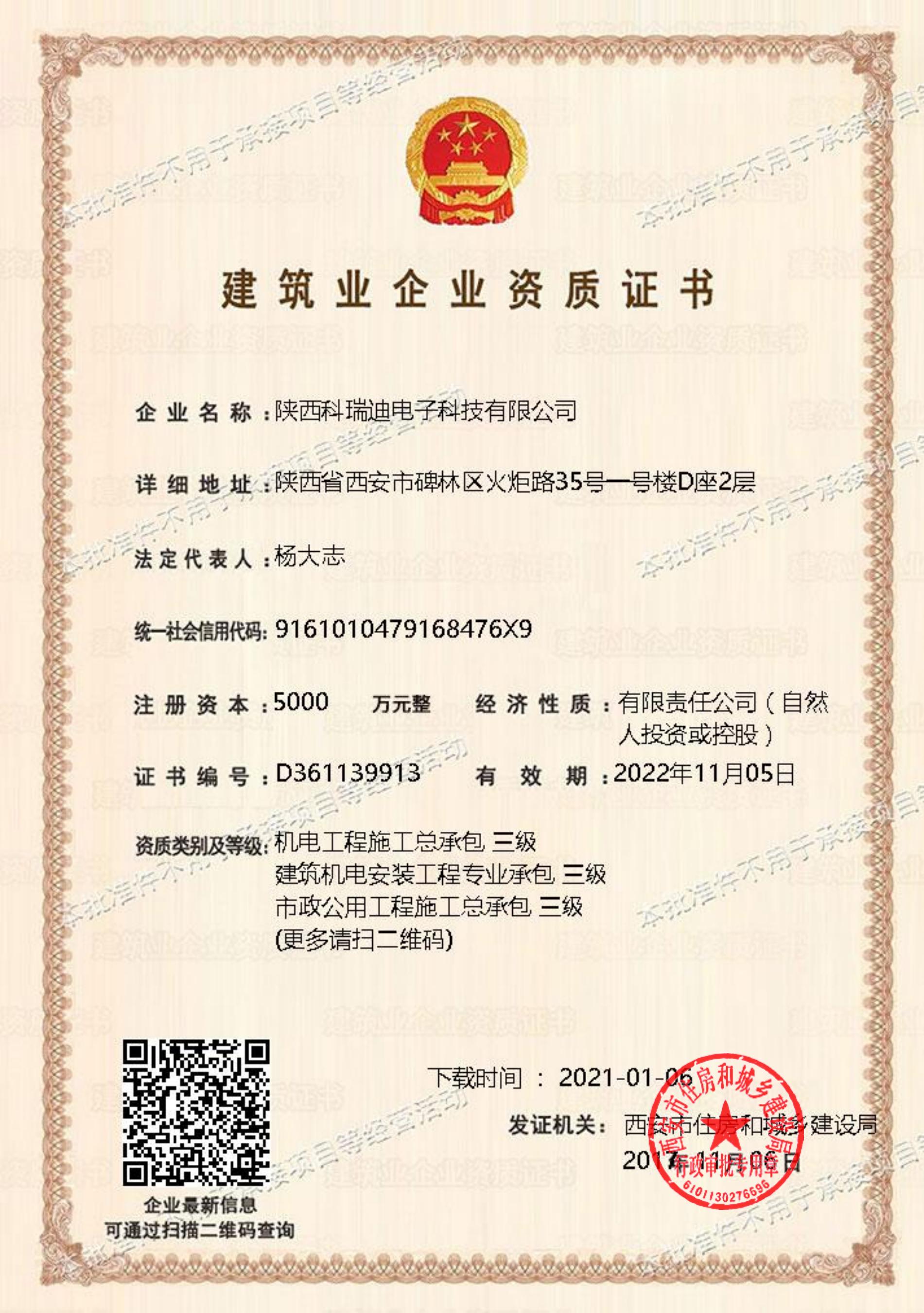 建筑企业资质证书(机电、市政) 编辑:admin 日期:2021-07-19 11:50 / 人气: 上一篇:质量管理体系认证证书(英文) ← 下一篇:建筑企业资质证书(电子智能化) → 内容搜索 Related Stories 推荐内容 Recommended 建筑企业资质证书(电子智能化)07-19 建筑企业资质证书(机电、市政)07-19 质量管理体系认证证书(英文)07-19 质量管理体系认证证书07-19 环境管理体系认证证书(英文)07-19